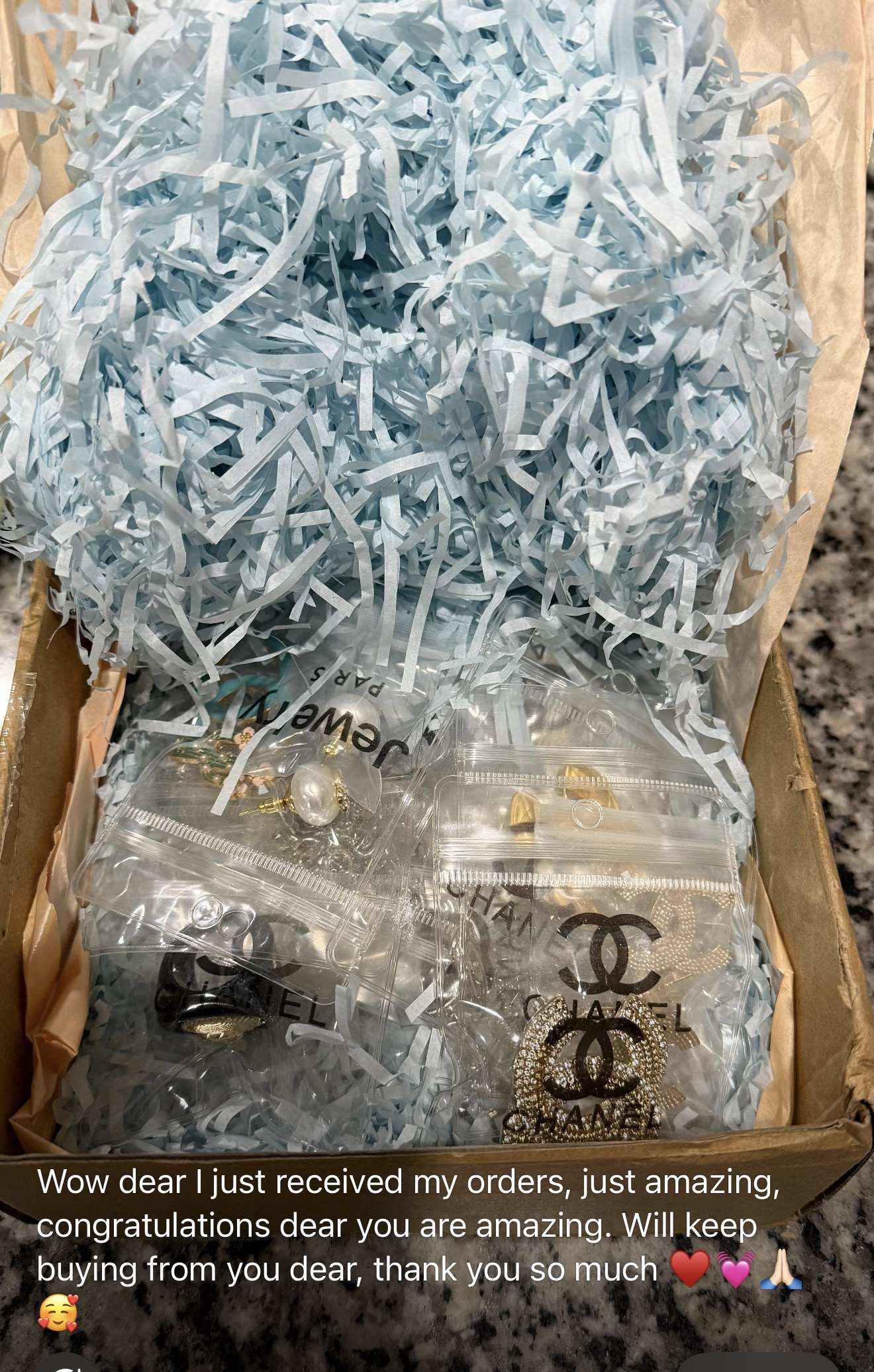 I received all my jewelry I really love and I really appreciate you guys the ways you take care your customers I can wait to make a other order thank you guys so much 💗